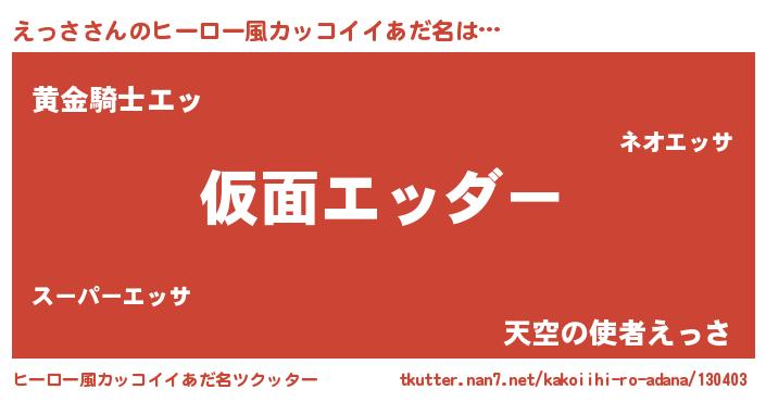 | 男性向けラノベタイトル風あだ名 | 『魔弾の王とえっさ』『エッサスレイヤー』 |