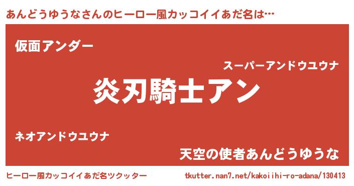 | 男性向けラノベタイトル風あだ名 | 『あんどうゆうなの嫁は女の子じゃないと思った?』 |