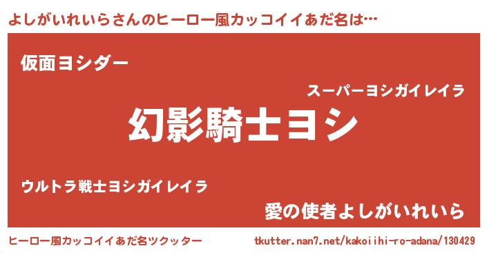 | 欧米人風あだ名 | 『ウサインよしがいれいら』 |