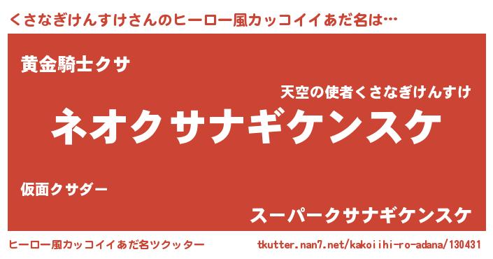 | 意味不明あだ名 | 『永久保存くさなぎけんすけ』 |