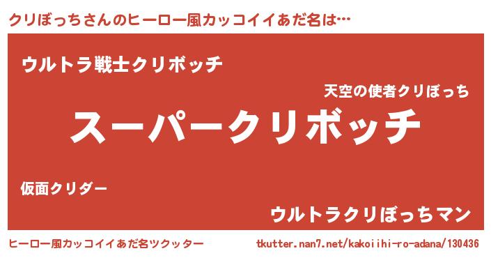 | 男性向けラノベタイトル風あだ名 | 『クリぼっちの憂鬱』『緋弾のクリボッチ』 |