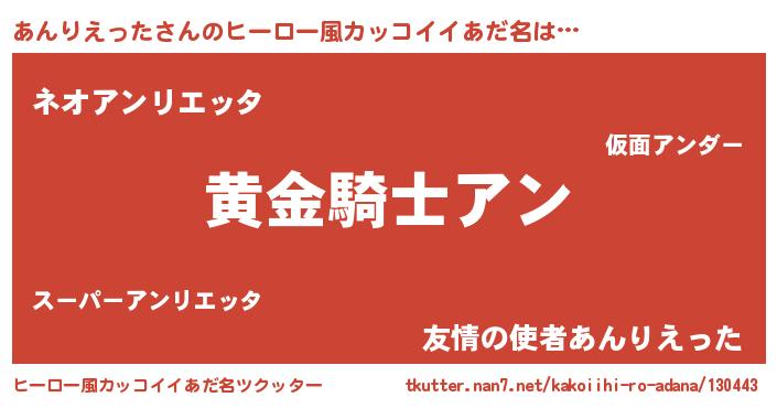 | 女子向けラノベタイトル風あだ名 | 『あんりえったは平凡を望む』 |