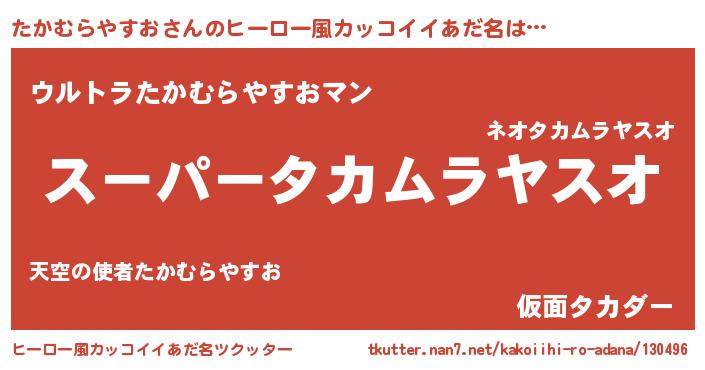 | 男性向けラノベタイトル風あだ名 | 『タカムラヤスオアートオンライン』 |