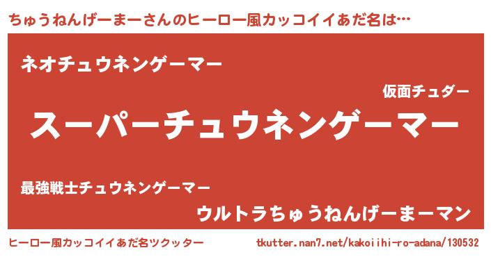 | 2回繰り返すあだ名 | 『ちろちろ』『ちゅちゅ』『ちちゅゅ』 |