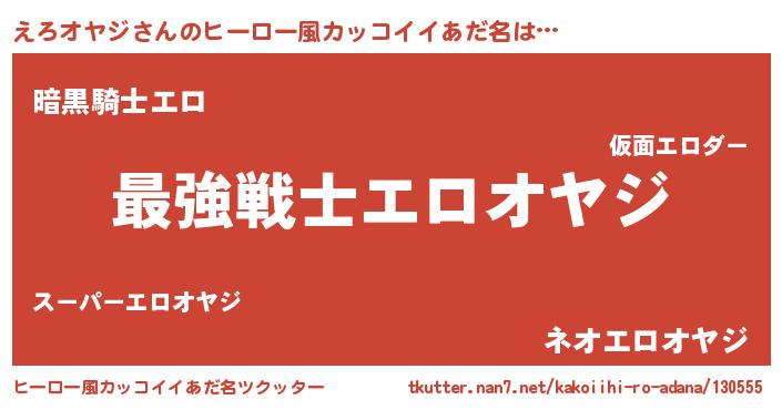 | 男性向けラノベタイトル風あだ名 | 『えろオヤジ~年齢イコール彼女いない歴の魔法使い~』 |