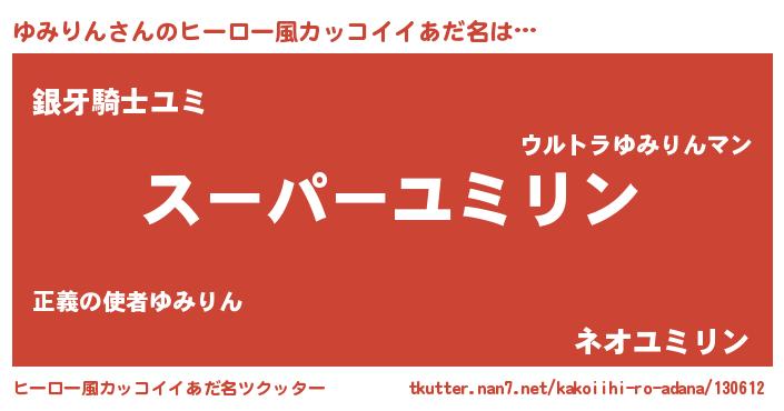 | 男性向けラノベタイトル風あだ名 | 『ゆみりんの憂鬱』 |