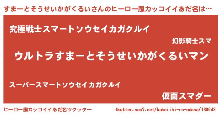 | 意味不明あだ名 | 『すまーとそうせいかがくるいフォーエバー』 |