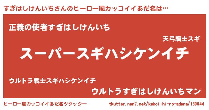 | 胡散臭い通販商品みたいなあだ名 | 『必ず成功する霊験あらたかなお札…その名も「すぎはしけんいち」』 |