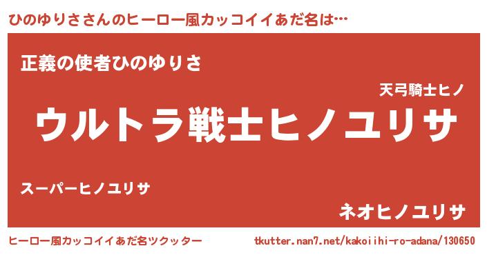 | 男性向けラノベタイトル風あだ名 | 『魔法科高校のひのゆりさ』 |