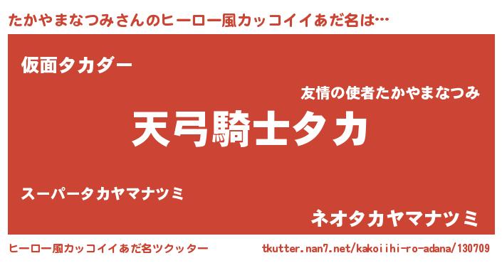 | ヘコむあだ名 | 『たかっぺ』『たかやまなつみ(苦笑)』 |