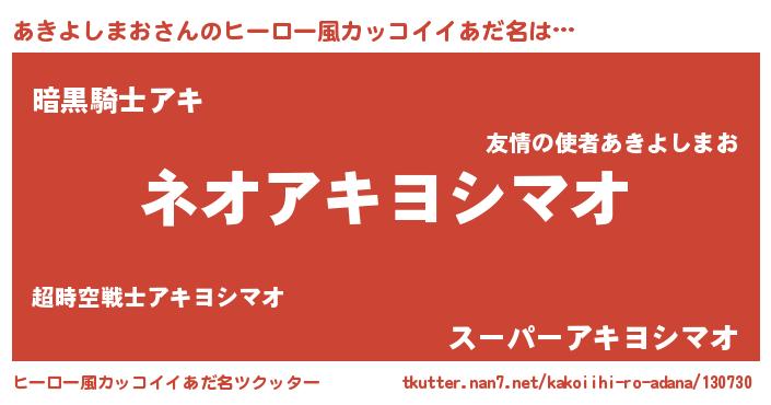 | ヘコむあだ名 | 『あきよしまお(震え声)』『あきっ子』 |