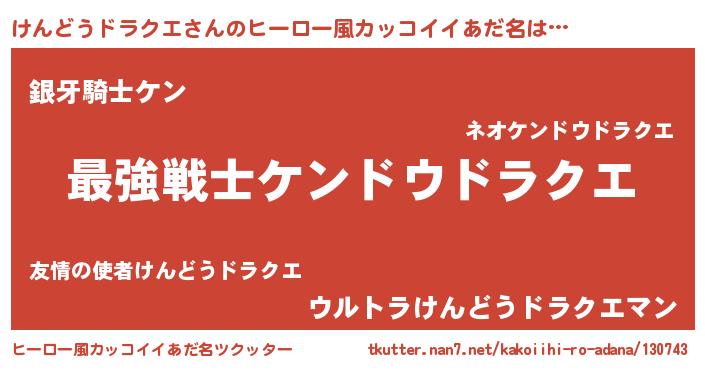 けんどうドラクエさんのヒーロー風カッコイイあだ名をツクッター!
