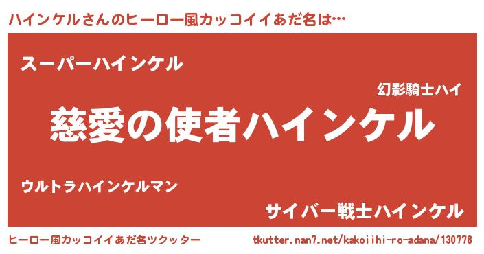 | 男性向けラノベタイトル風あだ名 | 『ノーゲーム・ノーハインケル』 |