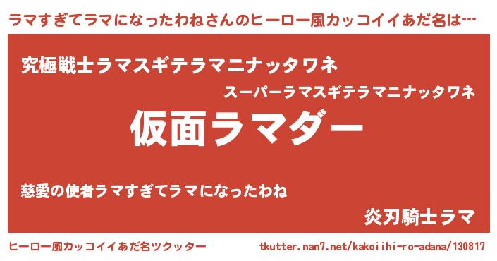 | 料理風あだ名 | 『ラマすぎてラマになったわねのカルパッチョ風』 |
