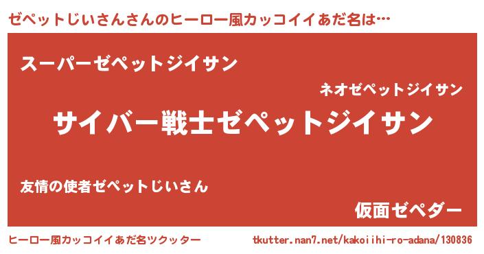 | ポケモン風あだ名 | 『ゼペゴンZ』『ゼペセウス』 |