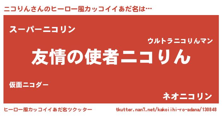 | 男性向けラノベタイトル風あだ名 | 『おまえをオタクにしてやるから、俺をニコりんにしてくれ! 』 |