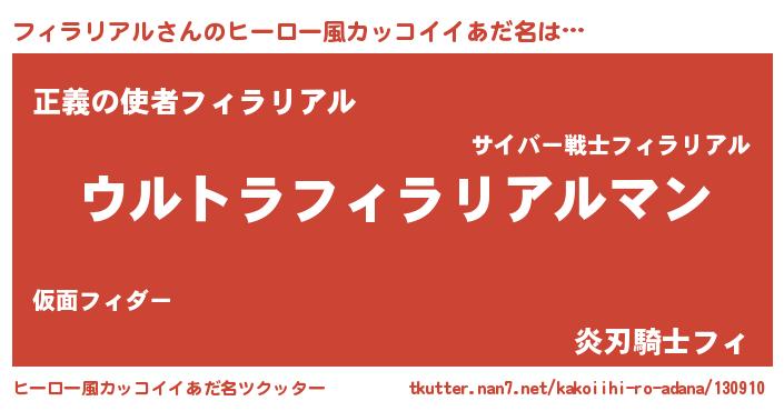 | 男性向けラノベタイトル風あだ名 | 『やはりフィラリアルの青春ラブコメはまちがっている 』 |