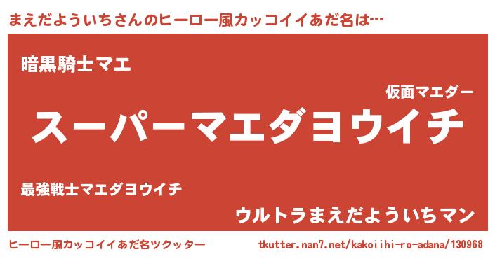 | 胡散臭い通販商品みたいなあだ名 | 『必ず成功する霊験あらたかなお札…その名も「まえだよういち」』 |