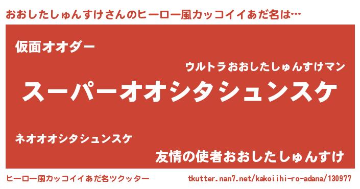 | 男性向けラノベタイトル風あだ名 | 『おおしたしゅんすけの憂鬱』 |