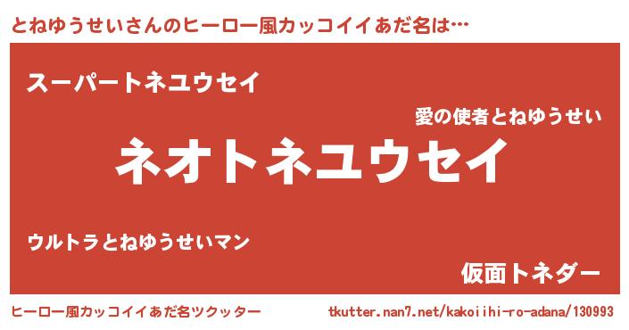 | 胡散臭い通販商品みたいなあだ名 | 『絶対に幸福をもたらす健康食品…その名も「とねゆうせい」』 |