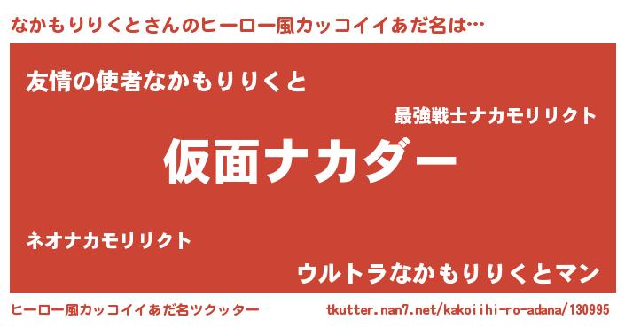 | 意味不明あだ名 | 『住所不定無職なかもりりくと(85歳)』 |