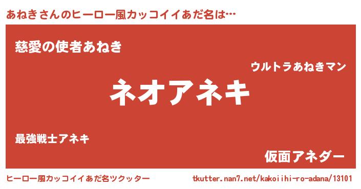 | 意味不明あだ名 | 『永久保存あねき』『エリンギ科あねき属』 |