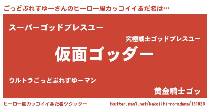 | 男性向けラノベタイトル風あだ名 | 『この素晴らしい世界にごっどぶれすゆーを!』 |