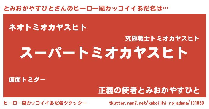 | ヘコむあだ名 | 『とみにー』『とみおかやすひと(爆)』 |