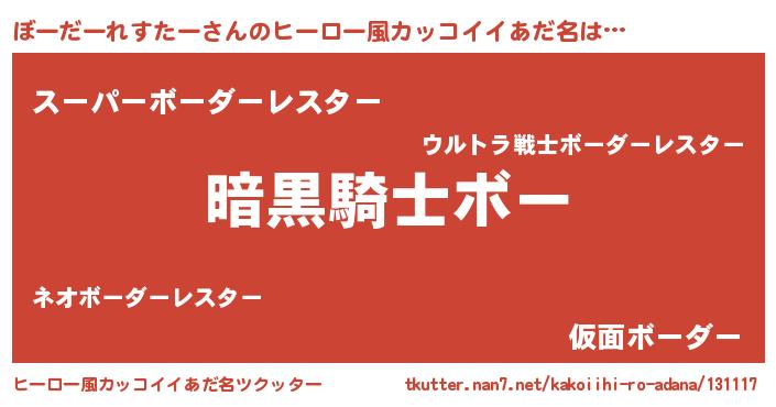 ぼーだーれすたーさんのヒーロー風カッコイイあだ名をツクッター!