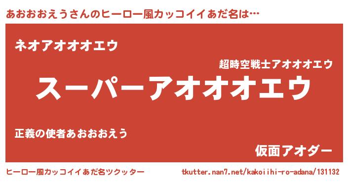 | 男性向けラノベタイトル風あだ名 | 『アオオオエウアートオンライン』 |