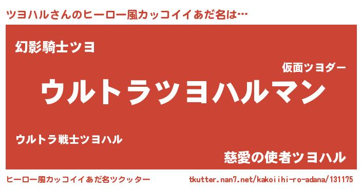 | 女子向けラノベタイトル風あだ名 | 『ツヨハル伯爵の花嫁』『ツヨハル恋絵巻』 |