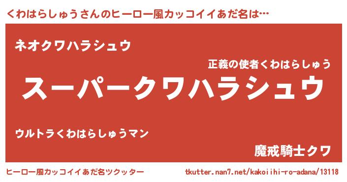 | 胡散臭い通販商品みたいなあだ名 | 『億万長者になれる霊験あらたかなお札…その名も「くわはらしゅう」』 |
