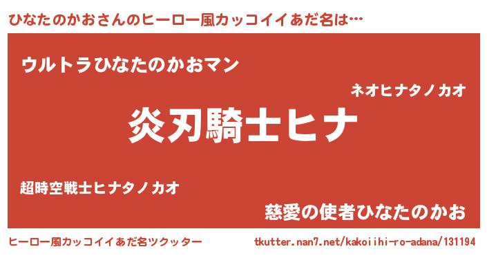 | ポケモン風あだ名 | 『ヒヒナタノカオ』『ヒナゴンZ』 |