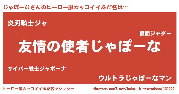 | 男性向けラノベタイトル風あだ名 | 『ジャポーナスレイヤー』 |