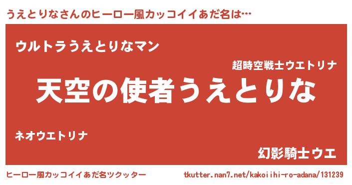 | 女子向けラノベタイトル風あだ名 | 『うえとりなの玉の輿計画!』 |
