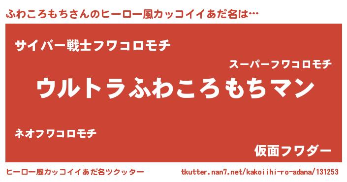 | 男性向けラノベタイトル風あだ名 | 『うちの娘の為ならば、俺はもしかしたらふわころもちも倒せるかもしれない。』 |