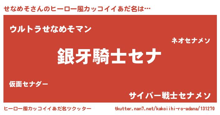 せなめそさんのヒーロー風カッコイイあだ名をツクッター!