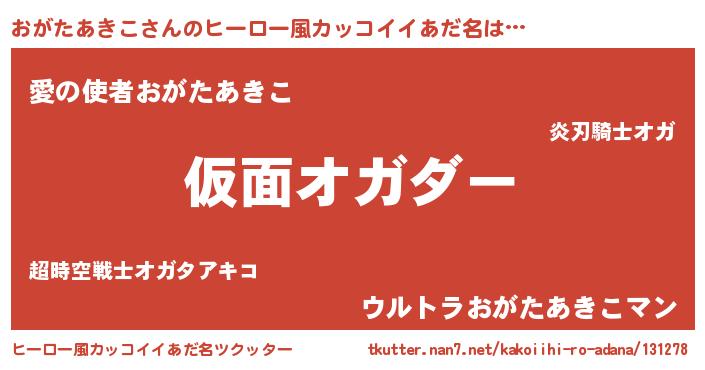 | 意味不明あだ名 | 『住所不定無職おがたあきこ(77歳)』 |