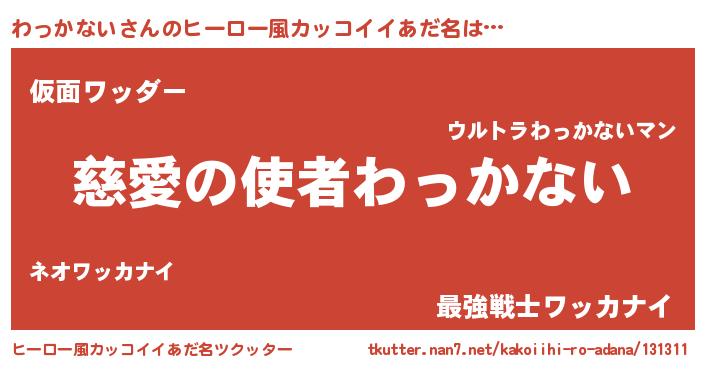 | 男性向けラノベタイトル風あだ名 | 『ノーゲーム・ノーワッカナイ』 |