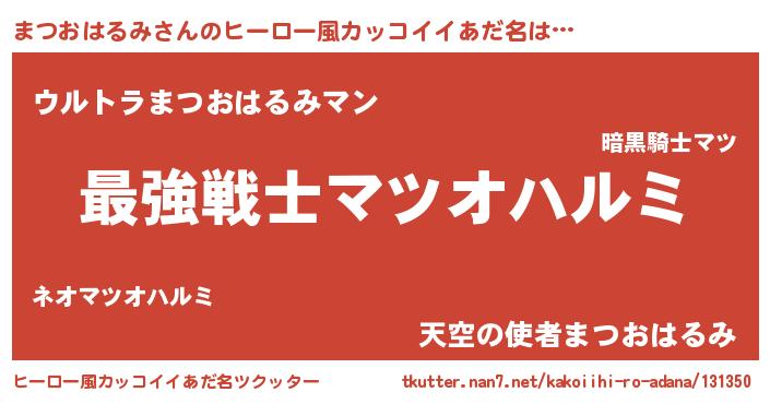 | 男性向けラノベタイトル風あだ名 | 『Re:まつおはるみから始める異世界生活』 |