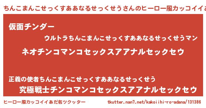| ヘコむあだ名 | 『ちんこまんこせっくすああなるせっくせう(笑)』 |