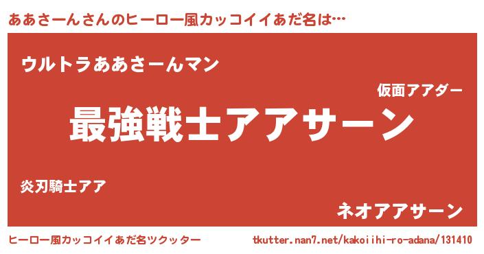 | 男性向けラノベタイトル風あだ名 | 『Re:ああさーんから始める異世界生活』 |
