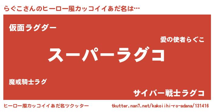 | 男性向けラノベタイトル風あだ名 | 『ラグコスレイヤー』『らぐこの憂鬱』 |