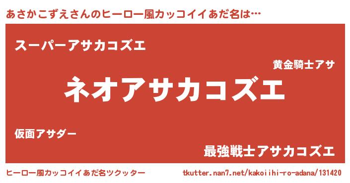 | ヘコむあだ名 | 『あさかこずえ(遠い目)』『あさっふぃ~』 |