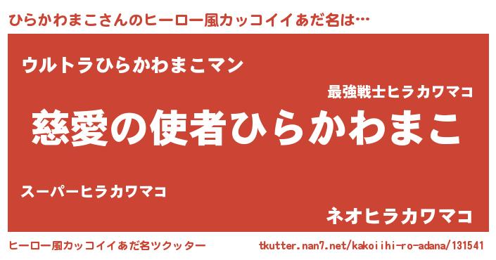 | 男性向けラノベタイトル風あだ名 | 『ノーゲーム・ノーヒラカワマコ』 |