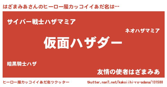 | 意味不明あだ名 | 『住所不定無職はざまみあ(98歳)』 |