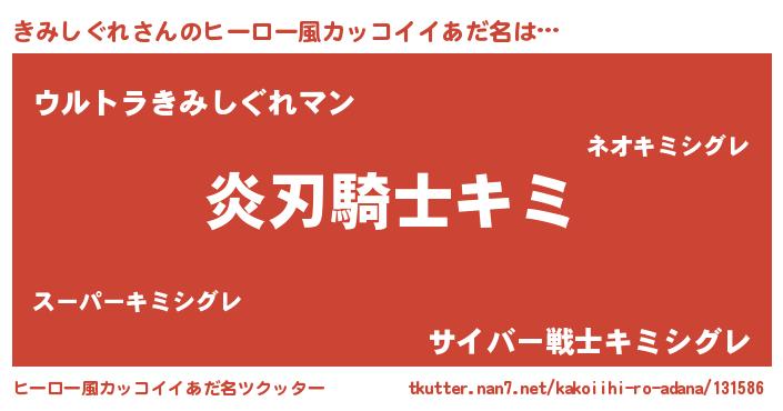 | 男性向けラノベタイトル風あだ名 | 『きみしぐれ~年齢イコール彼女いない歴の魔法使い~』 |