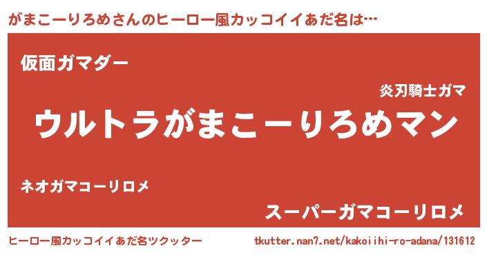 | 欧米人風あだ名 | 『がまこーりろめクリステル』 |