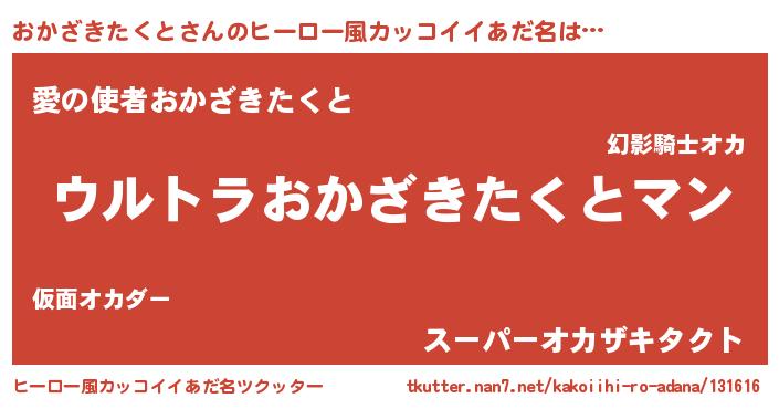| 男性向けラノベタイトル風あだ名 | 『おかざきたくとに滅ぼされるだけの簡単なお仕事です』 |