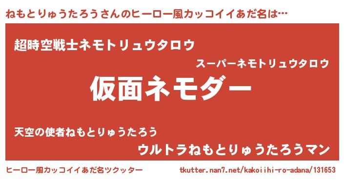 | 男性向けラノベタイトル風あだ名 | 『この素晴らしい世界にねもとりゅうたろうを!』 |